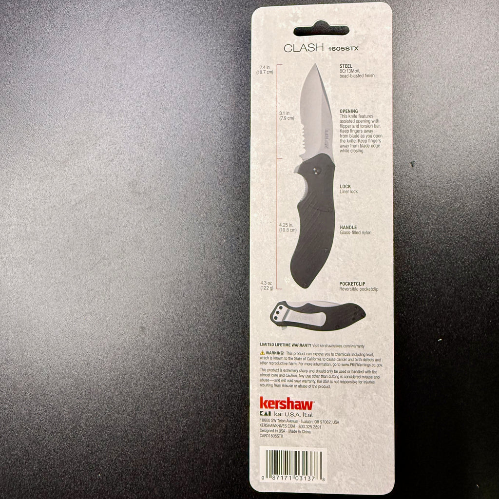 The Kershaw Clash is a robust, hard-use folder designed for those who need a knife that can handle more than just opening letters. Featuring a beefy, ergonomic handle and a highly versatile partially serrated blade, the Clash is ready to tear through tough, fibrous materials like rope, webbing, and heavy cardboard. Backed by Kershaw's famous assisted opening technology, this knife deploys in a flash and locks up tight, making it an essential tool for first responders, tradesmen, and everyday carry enthusiasts alike.